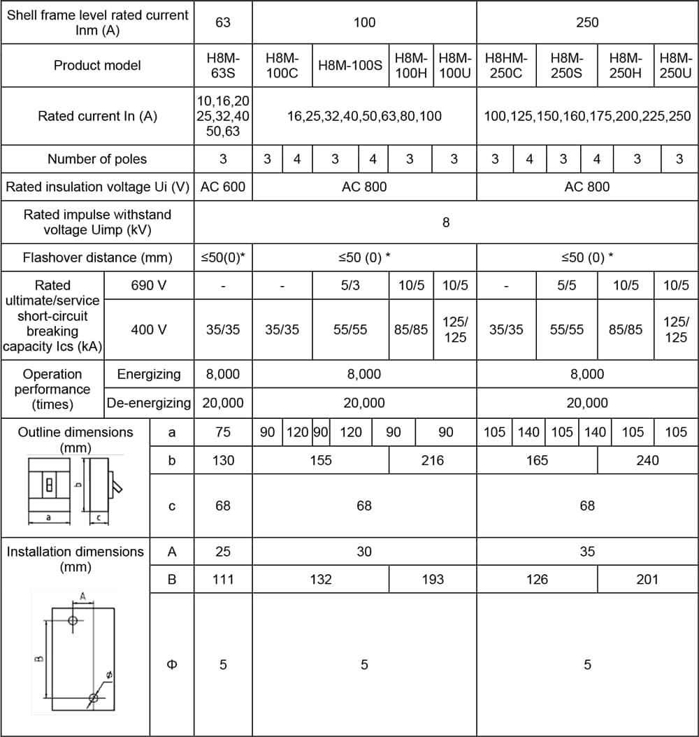 The H8M Series Molded Case Circuit Breaker (hereinafter referred to as “circuit breaker”) is the high-tech product in the 21st century. This product is characterized by advanced design, reliable performance, high technical indicators, beautiful appearance, and small size.