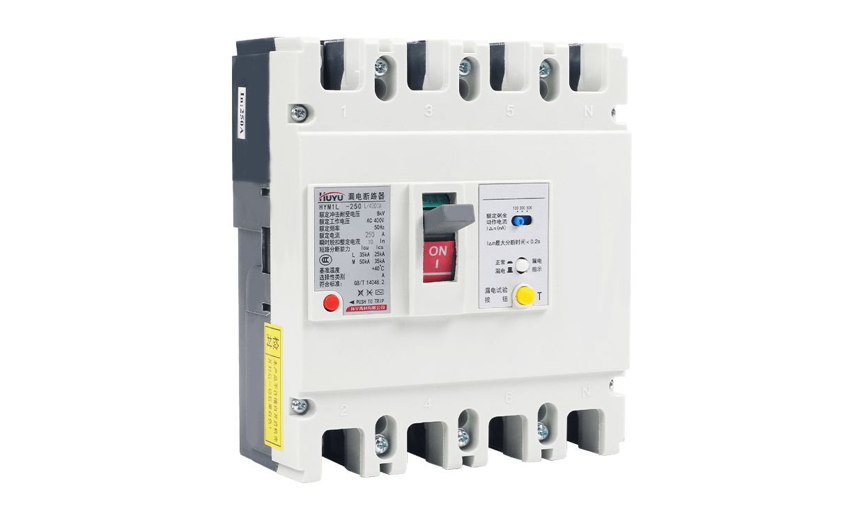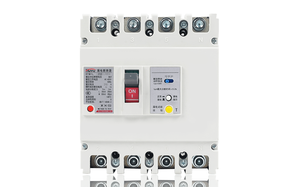 The HYM1L Series Earth Leakage Circuit Breaker (hereinafter referred to as the “circuit breaker”) is one of the new earth leakage circuit breakers designed and developed by our company with international advanced technology. This series of products is suitable for the circuits with AC 50 Hz, rated isolation voltage of 800 V, rated working voltage of 400 V, and rated current up to 630 A and below, which can provide indirect contact protection for people with fatal electric shock, and can also be used to prevent major fire hazard caused by grounding fault current caused by equipment insulation damage. It can be used to protect the overload, short circuit and undervoltage of the line, and can also be used for infrequent transfer of lines.