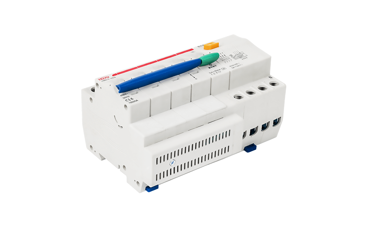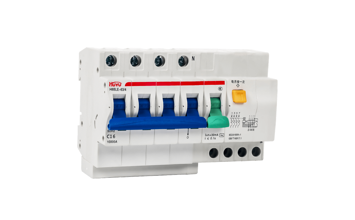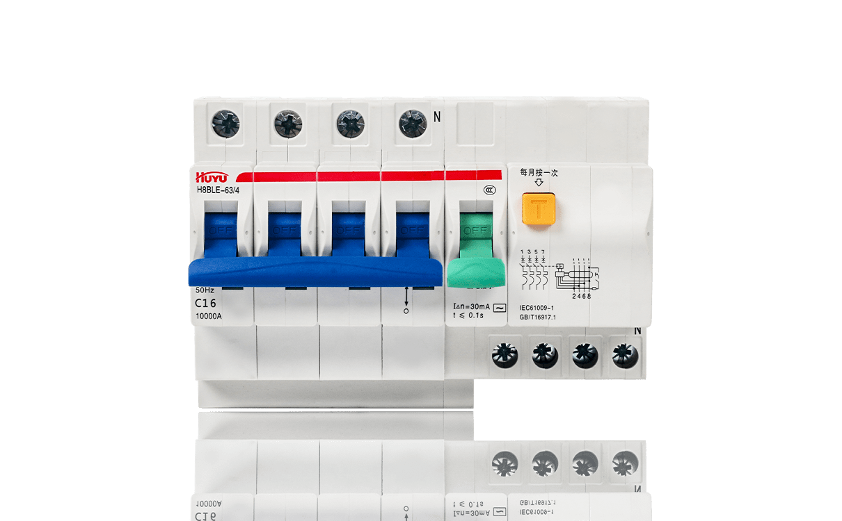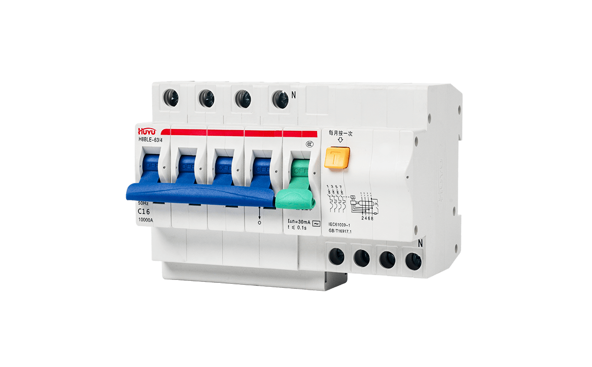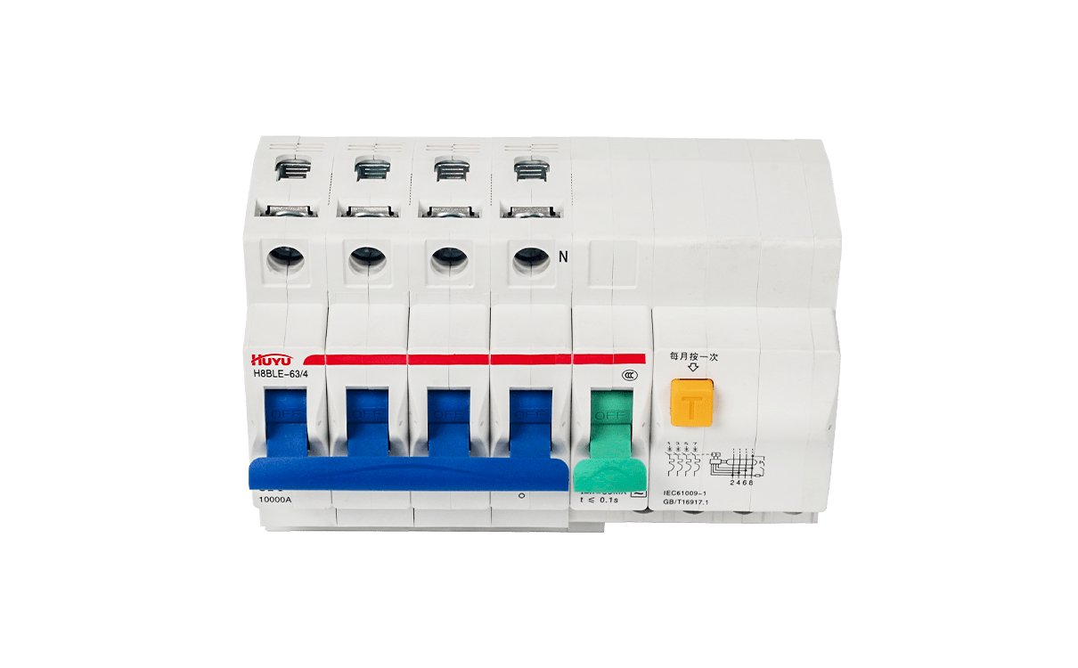 The H8BLE series residual current circuit breaker is applied to the circuit of AC 50Hz, rated voltage up to 400V, rated current 63A, with power supply neutral point earthing. It is used in housing, tertiary sector and industry, for personnel and fire protection. Protect installations against fire hazard due to insulation faults, and provide cable and line protection against overload and short-circuits.