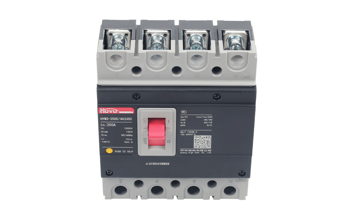 The circuit breaker has the rated isolation voltage of 1000 V (800 V for HYM3-125), which is suitable for the distribution network with AC 50/60 Hz, and rated working current up to 630 A. It is used to distribute electric energy and as overload, short-circuit and undervoltage protection of lines and power supply equipment, as well as infrequent switching of lines and infrequent starting and overload, short-circuit and undervoltage protection of motors.