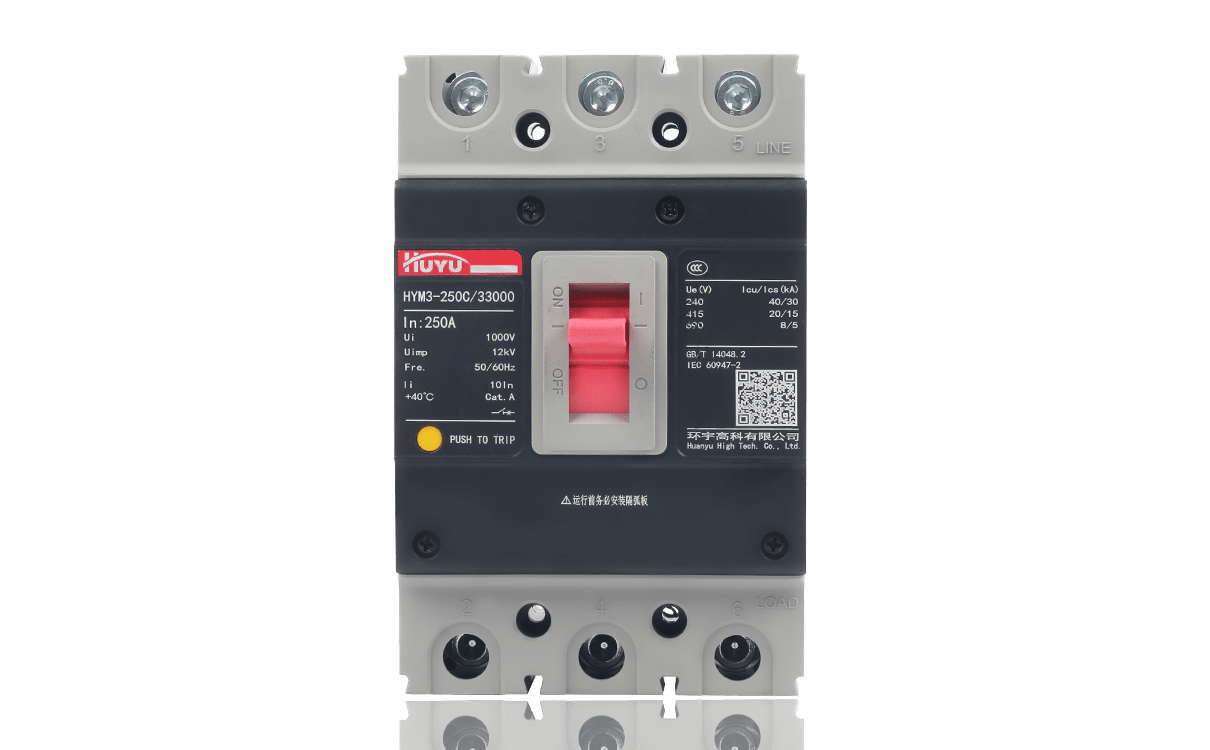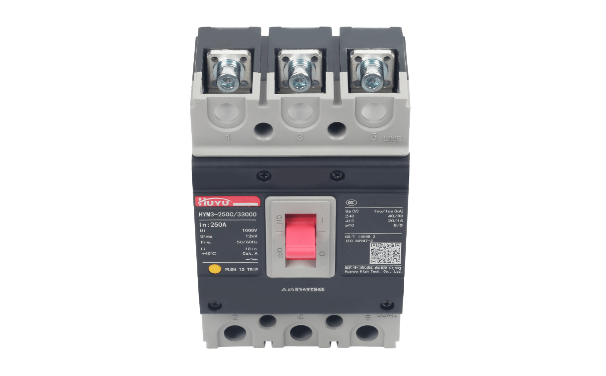 The HYM3 Series Molded Case Circuit Breaker (hereinafter referred to as “circuit breaker”) is a new type of circuit breaker designed and developed by our company with comprehensive international advanced technology. The product is characterized by advanced design, reliable performance, high technical indicators, convenient maintenance, desirable appearance and small size.