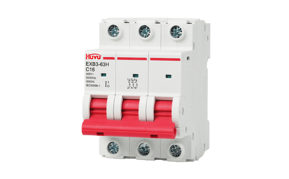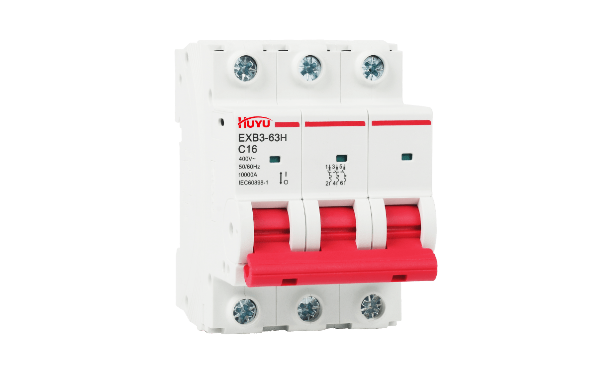 The EXB3-63H series Miniature Circuit Breaker (hereinafter referred to as “circuit breaker”) can be used in circuit with AC 50Hz, rated voltage up to 400V, and rated current up to 630 A, to offer overload and short-circuit protection for construction power distribution, similar power line facilities and electrical equipment, and can be also used for the infrequent on-off control.