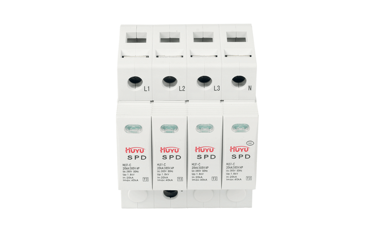 The HLS1 Series Surge Protection Device (SPD) is suitable for low-voltage power grids with AC 50/60 Hz and rated voltage of 400 V, which can protect the system from the impact of transient surge voltage caused by lightning strike or switching operation, limit instantaneous overvoltage and discharge surge current.